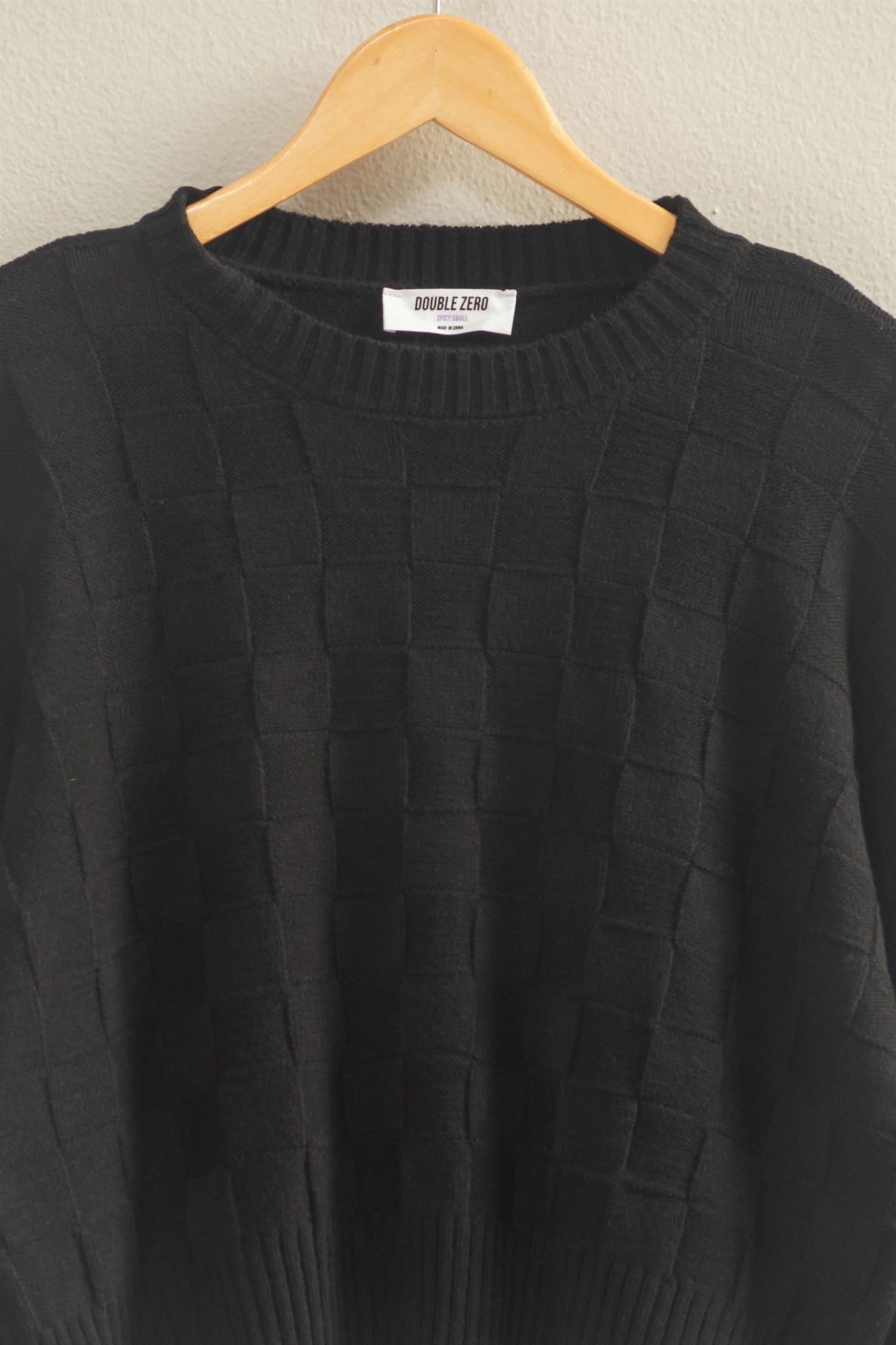 Elevate your everyday wardrobe with this striking woven checkered sweater in classic black. The intricate checkered pattern adds visual interest while the soft, breathable weave keeps you comfortable throughout the day. Perfect for layering or wearing solo, this versatile piece transitions seamlessly from casual outings to relaxed office settings. The timeless black colorway pairs effortlessly with any outfit, making it a reliable staple you'll reach for season after season. Discover the perfect balance of style and comfort that makes getting dressed a pleasure.