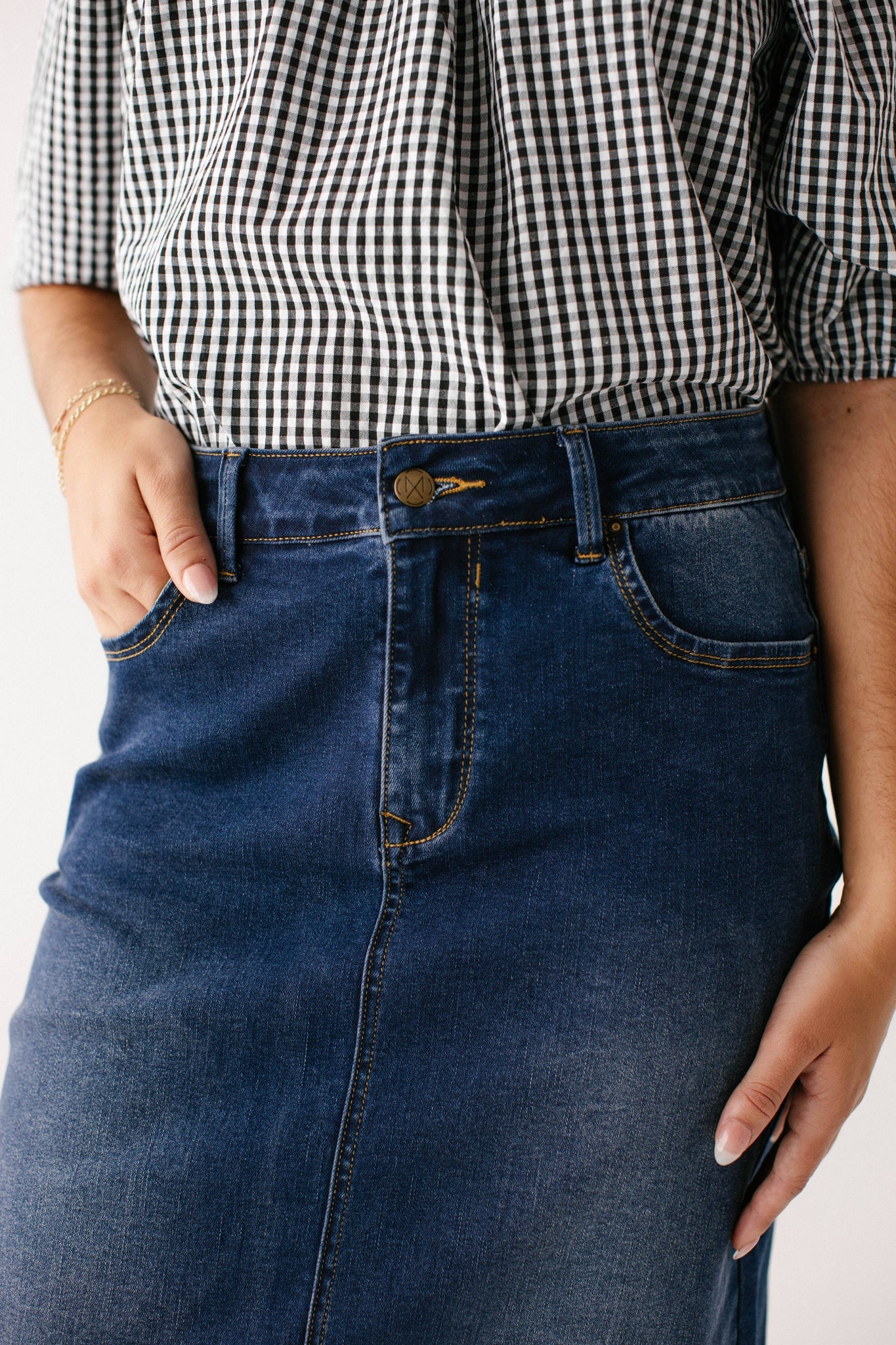 Trends come and go but denim remains a wardrobe staple! Crafted from a comfortable stretch denim in a timeless dark blue wash, the Wren will be your new go to skirt! The details include a traditional button and fly closure and functional pockets. And the very best part - this modest denim skirt comes in three lengths for you to choose from! Exclusively designed by us for you.